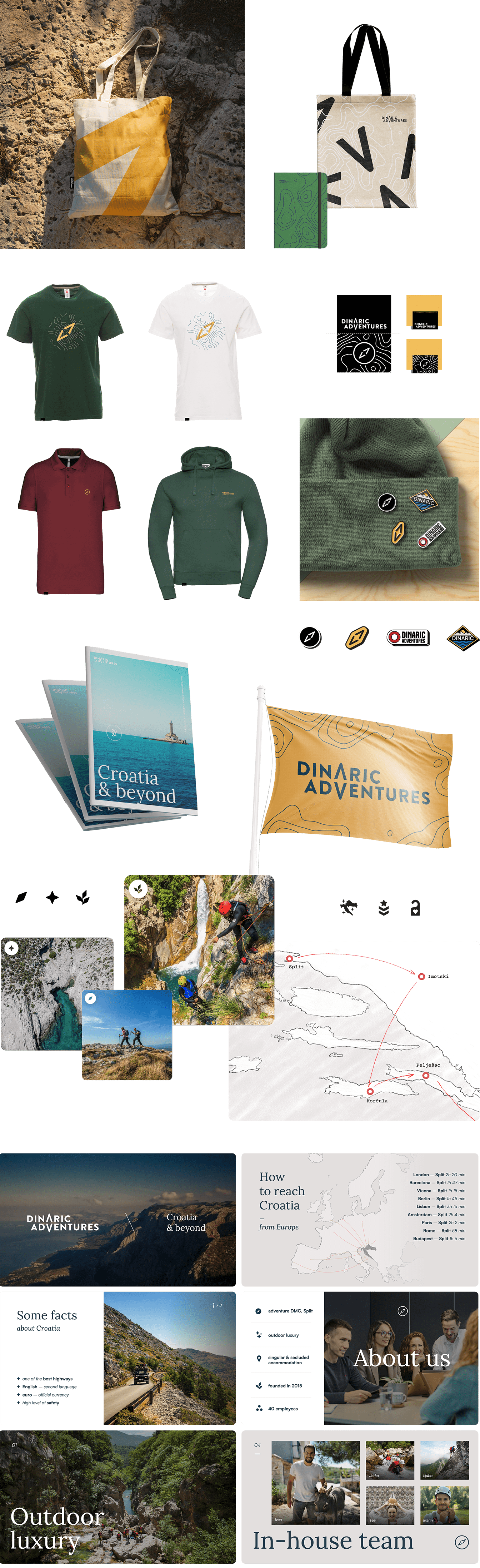 The color system consists of two equally important primary colors (Dinaric Black & Dinaric Rock)and 4 secondary colors (Dinaric Indigo, Green, Sunray and White).